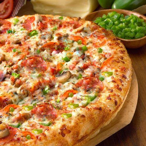Large Mozzarella, pepperoni, ham, sausage, beef, mushroom, onion and bell pepper. Cal 227 - 321
