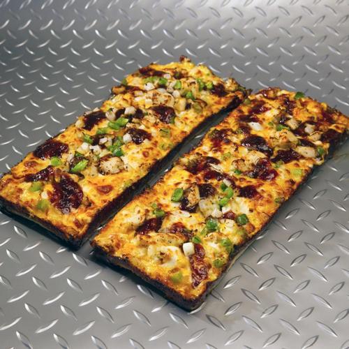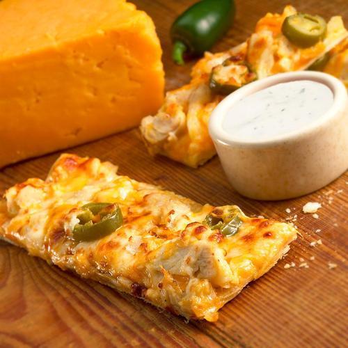 Strips of our thin and crispy crust with chicken or beef, onions, jalapenos, mozzarella, and cheddar cheese. Served with Jalapeno Ranch! Available in Chicken or Beef.